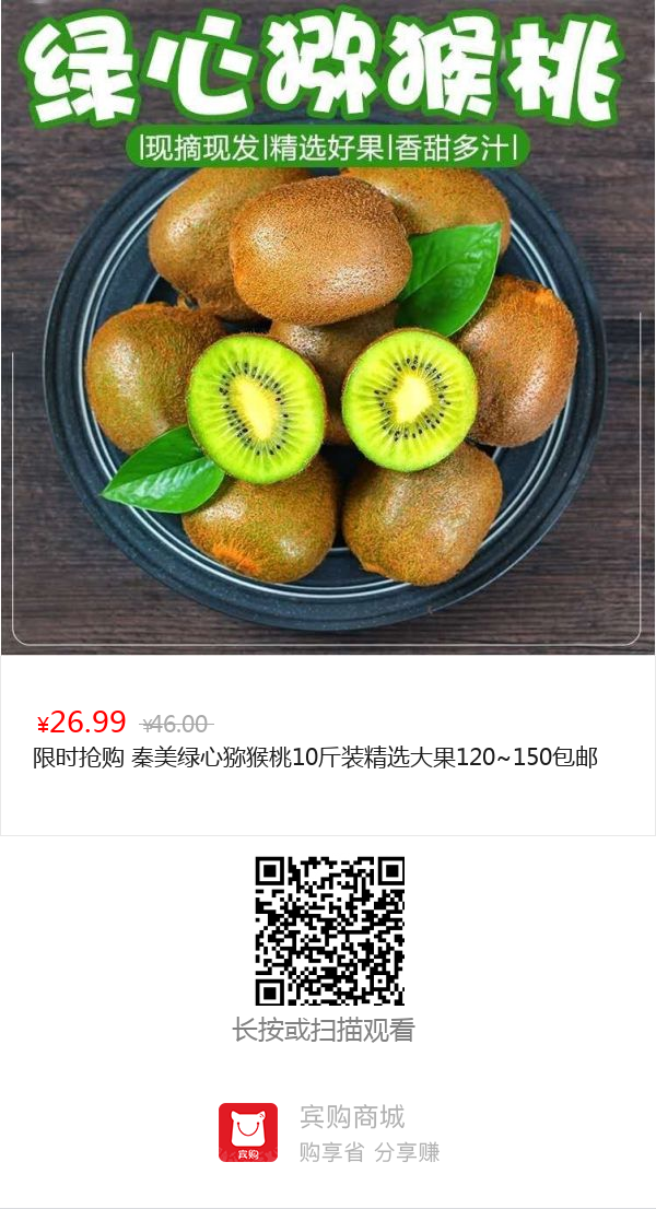 限时抢购 秦美绿心猕猴桃10斤装精选大果120~150包邮带箱9.5/10斤装