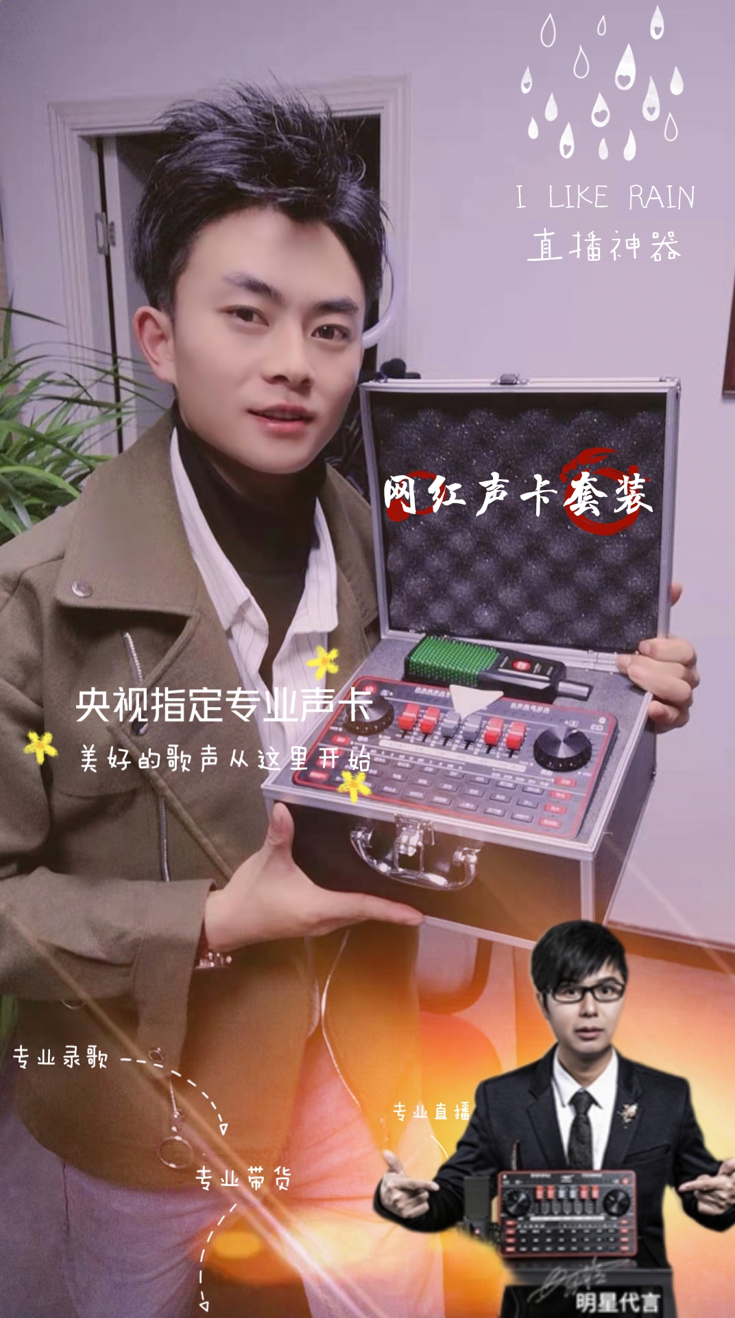 网红直播套装K歌/带货神器,声卡、麦克风、支架、补光灯包邮