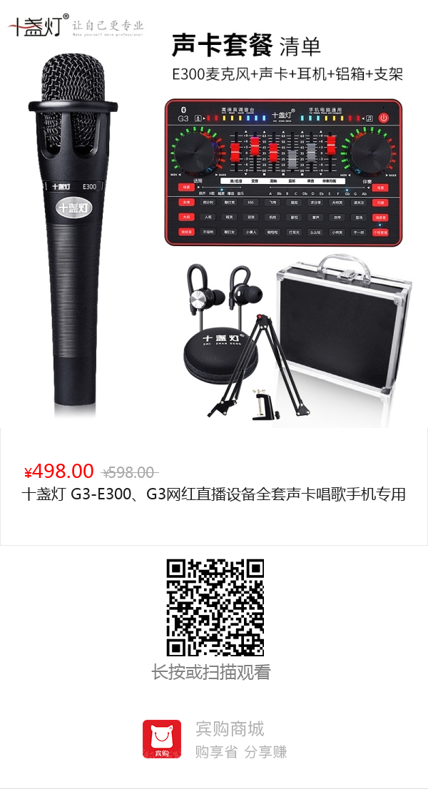 十盏灯 G3-E300、G3网红直播设备全套声卡唱歌手机专用