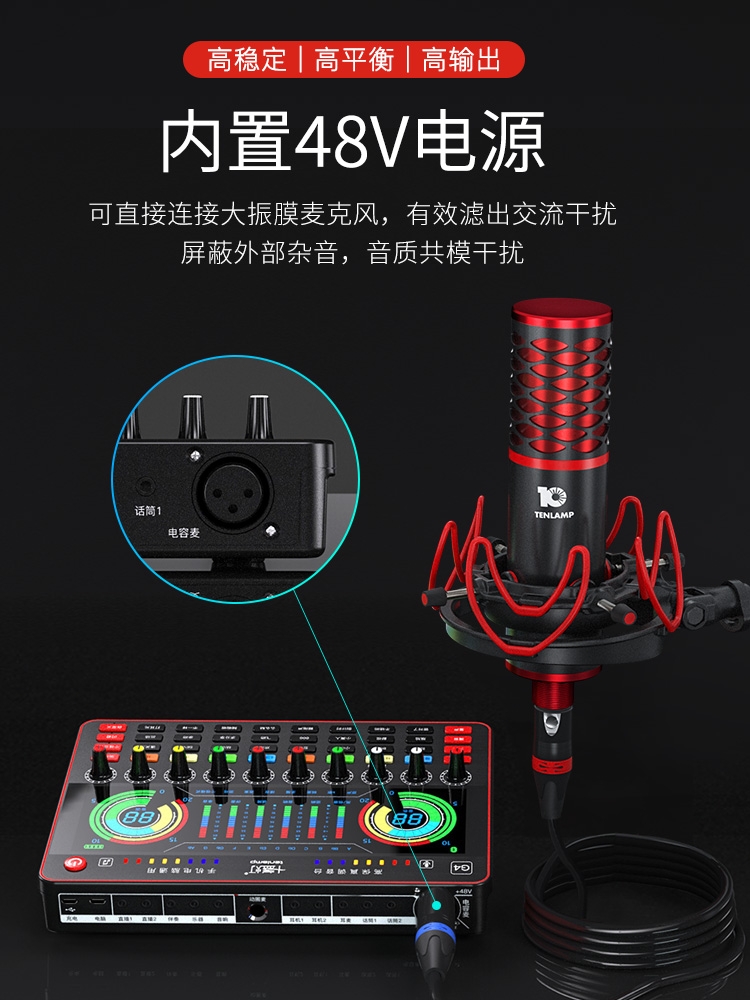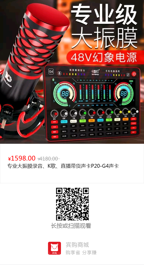 专业大振膜录音、K歌、直播带货声卡P20-G4声卡