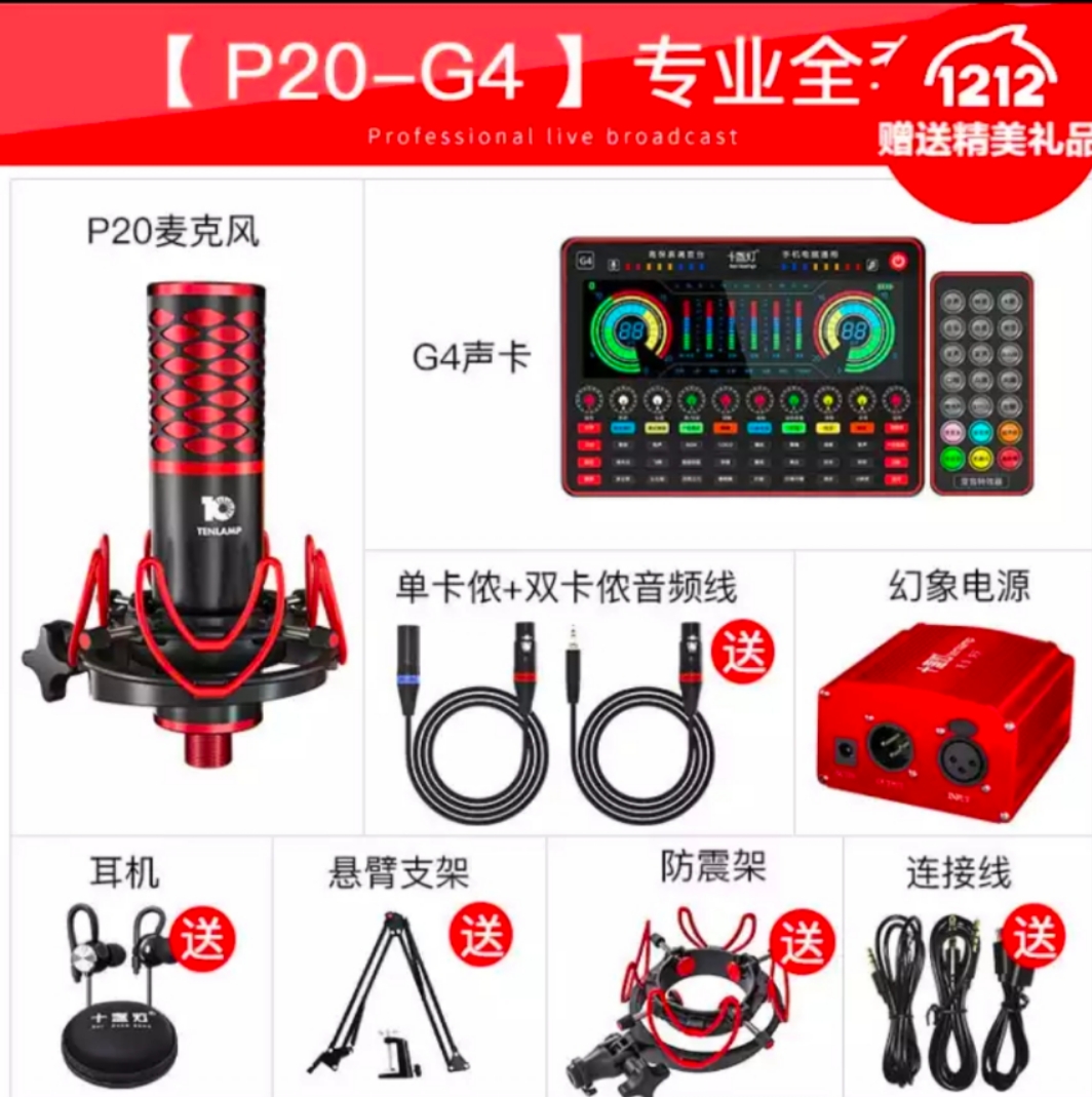 专业大振膜录音、K歌、直播带货声卡P20-G4声卡P20/G4专业套装