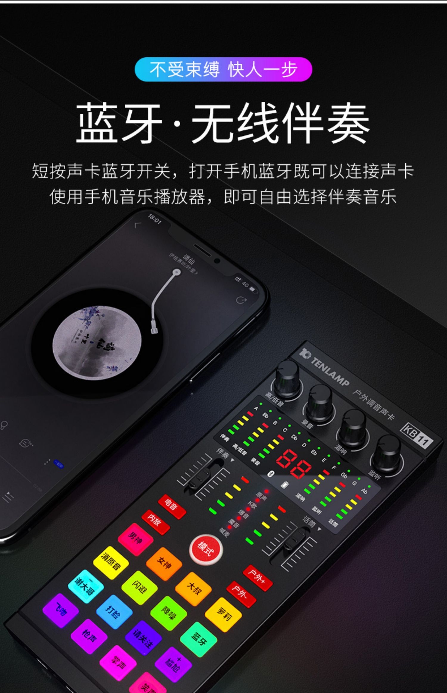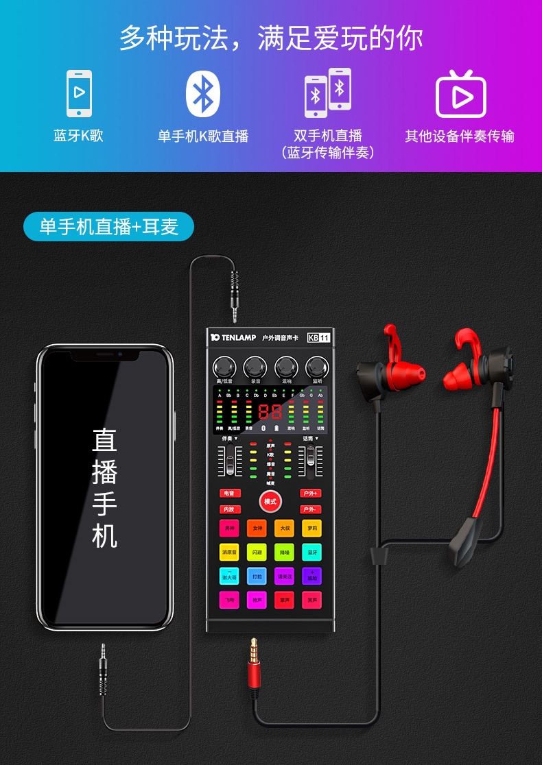 双12活动价 户外室内直播声卡KB11声卡+R6耳麦