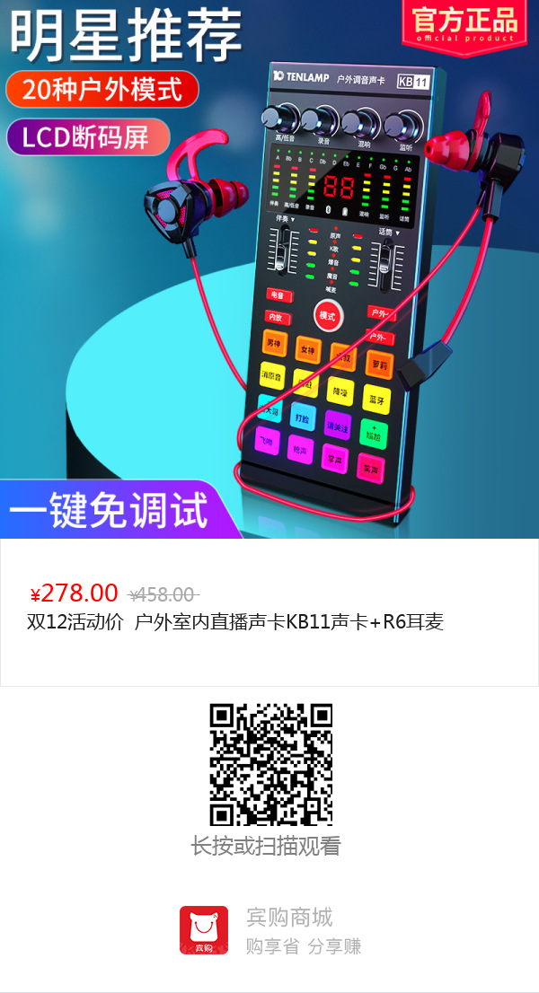 双12活动价 户外室内直播声卡KB11声卡+R6耳麦KB11声卡+R6耳麦