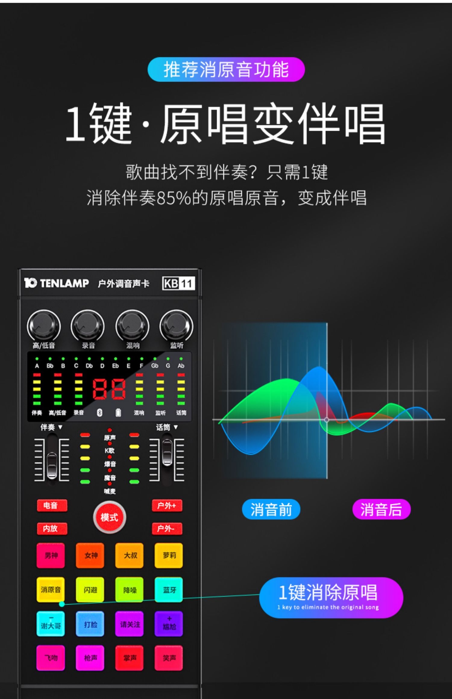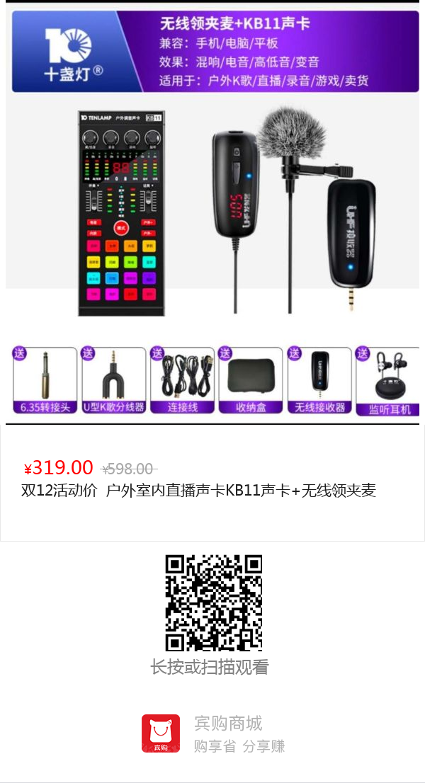 双12活动价 户外室内直播声卡KB11声卡+无线领夹麦KB11声卡+无线领夹麦
