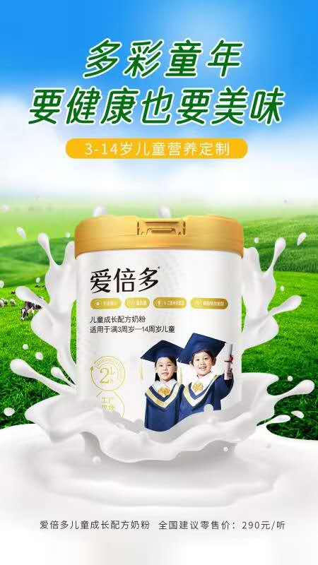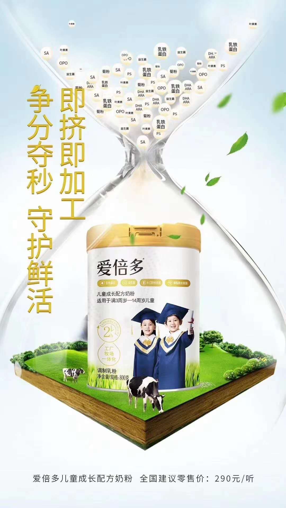 君乐宝爱倍多儿童活性奶粉 从挤奶到加工仅需2小时 工厂牧场一体化