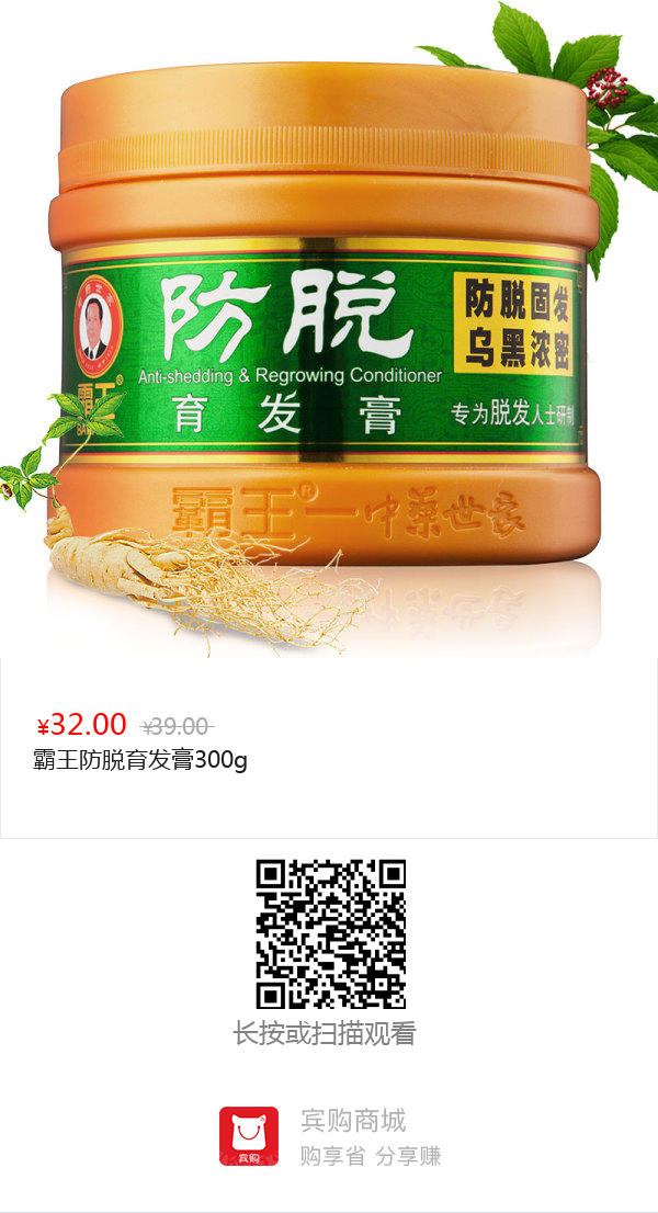 霸王防脱育发膏300g(防脱育发增发密发 强根固发 乌黑浓密 发膜倒膜)