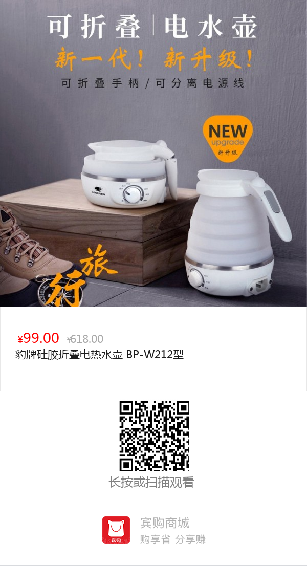 豹牌硅胶折叠电热水壶 BP-W212型