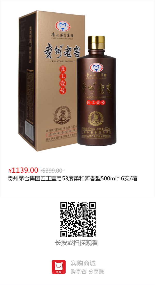 贵州茅台集团贵州老窖匠工壹号53度柔和酱香型白酒礼盒装 500ml* 6支/箱