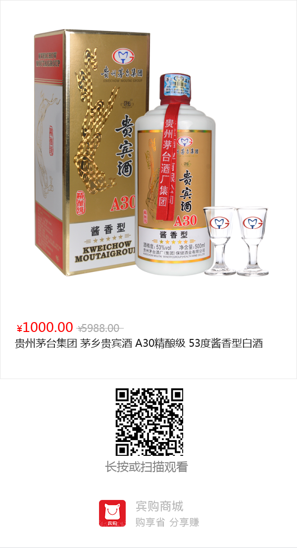 贵州茅台集团 茅乡贵宾酒 A30精酿级 53度酱香型白酒 500ml /瓶 6瓶装 整箱发货